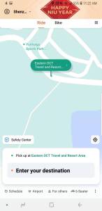 You will eventually get to a nice boardwalk, this leads to OCT EAST.  From here you can get a didi very easily