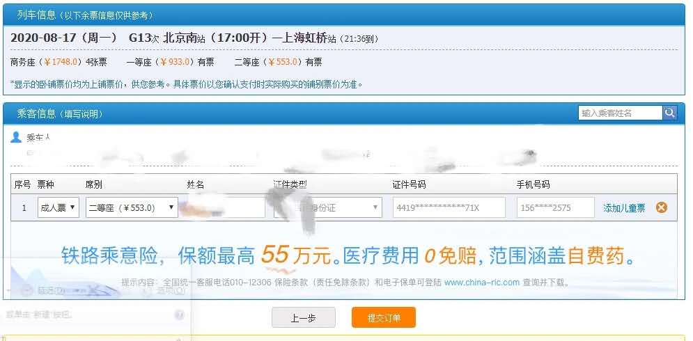 Passenger information appears. If you have booked a ticket on the website before, the information is in.