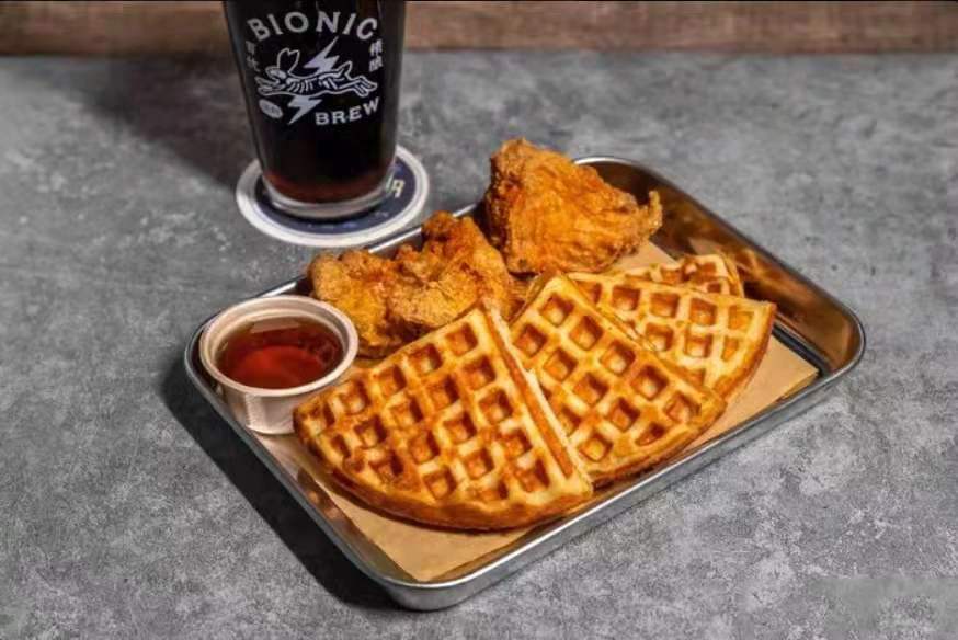 The food was solid. Came quickly and at good intervals. Chicken and waffles, burger, fries and cake. The beyond meat burger was a nice surprises too, being almost the same as a real meat patty. I thought the cake was good too, the sweetness a good accompaniment to the beer