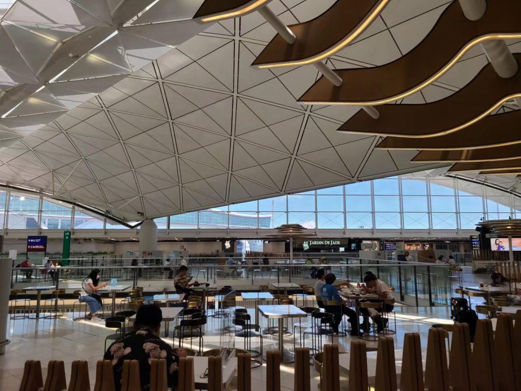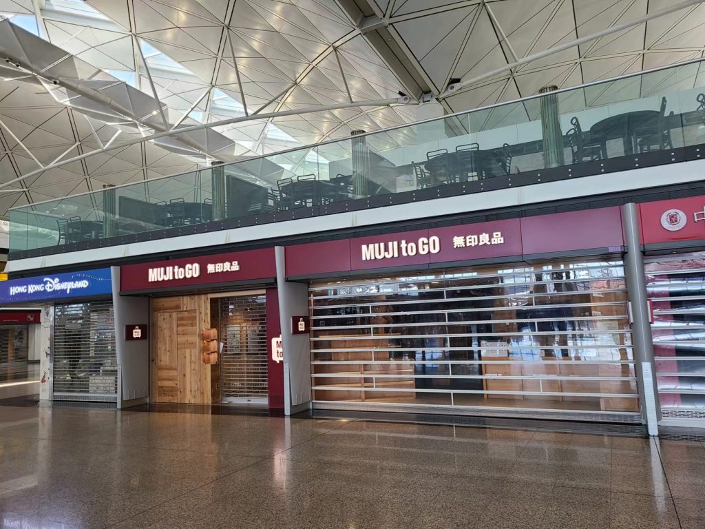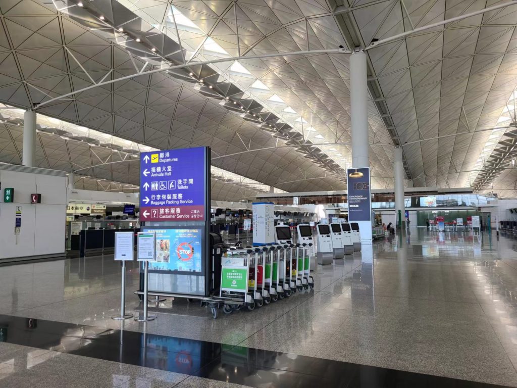 Hong Kong Airport is now a ghost town. So try not to arrive too early because there is nothing to do.