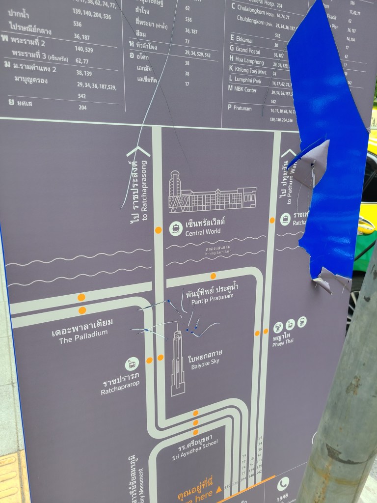 Getting the bus in Bangkok isn’t as bad as you think. Look for the bus stations on the sidewalk, and look at the ‘bus numbers’ that stop there.