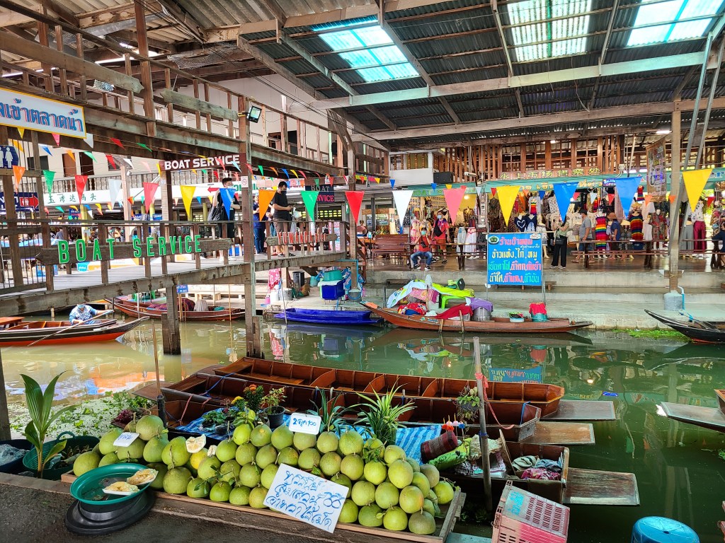 The famous floating market, and unlike others which are standing markets floating on water, this one uses boats to buy&sell. there are many in the Bangkok area but this is probably the most well known one.